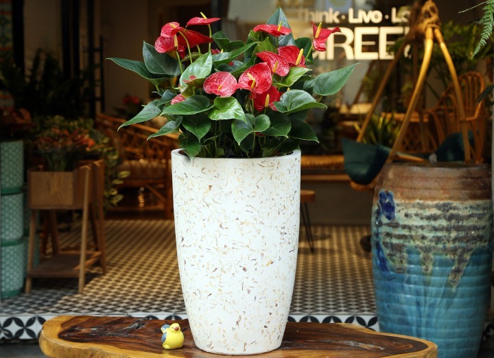 Tại Vườn Cây Nhỏ , Hoa Hồng Môn được bố trí trong nhiều loại chậu gốm, sứ, thủy tinh sang trọng, phù hợp với nhiều không gian khác nhau.